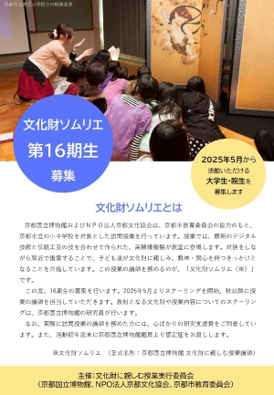 2025年5月から「文化財ソムリエ(※)」として、ボランティア活動をしていただける大学生・院生を募集します。